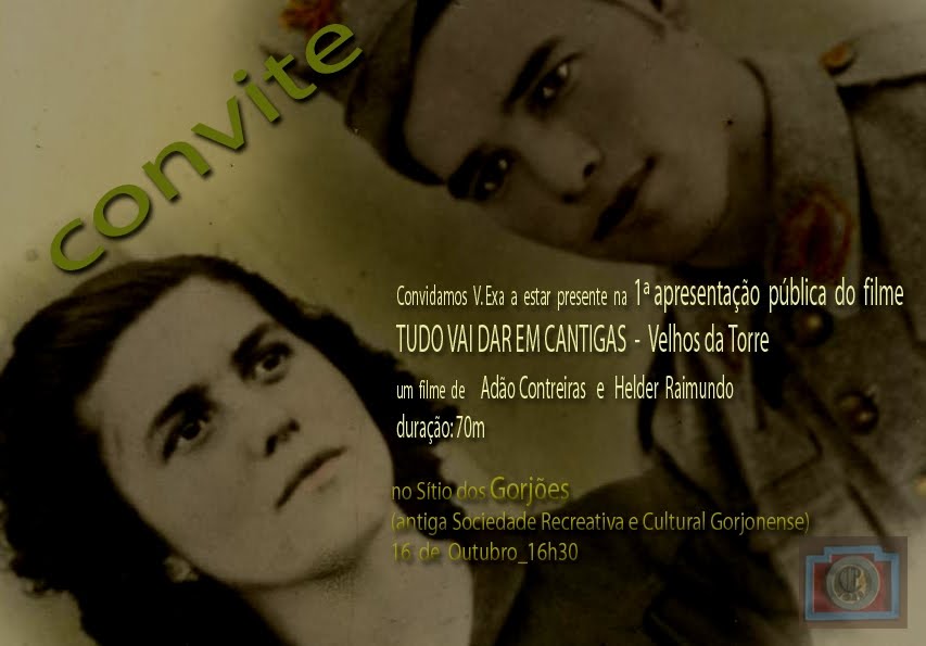 Na segunda parte será apresentado, pela primeira vez ao público, o filme "Tudo Vai dar em Cantigas" (70'/cor), que aborda a vida, o canto e a dança dos Velhos da Torre, produzido e realizado por Adão Contreiras e Helder Raimundo, que falarão sobre a obra. No final, os presentes poderão conviver com os actores do filme, o casal Sofia Coelho da Silva e Francisco Cabrita Belchior, que estarão connosco.